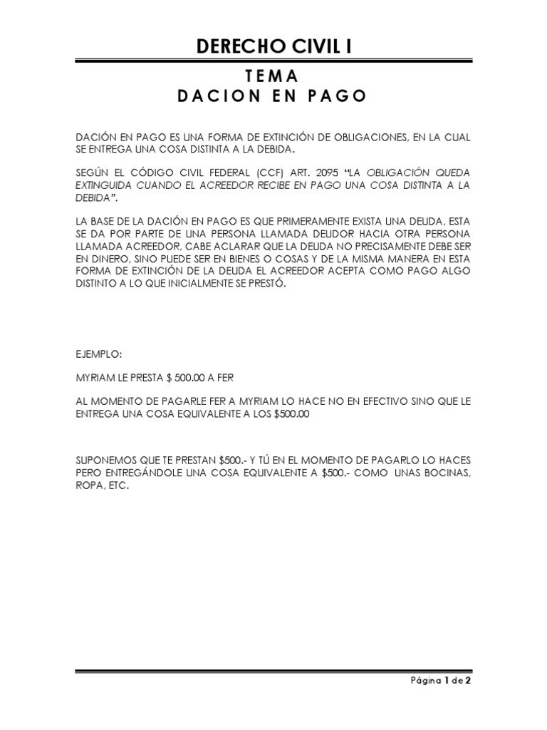 Dacion en pago que es. Maybe you would like to learn more about one of these? We did not find results for: Check spelling or type a new query.